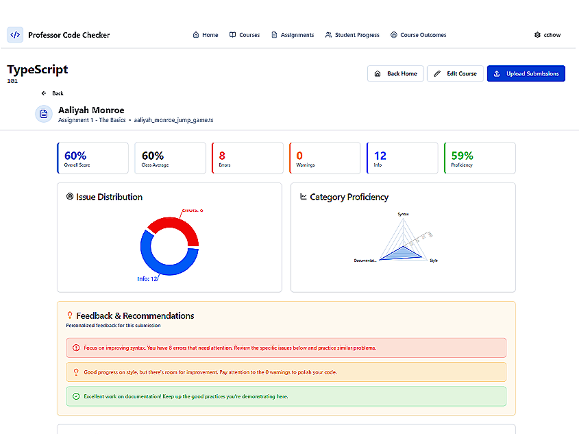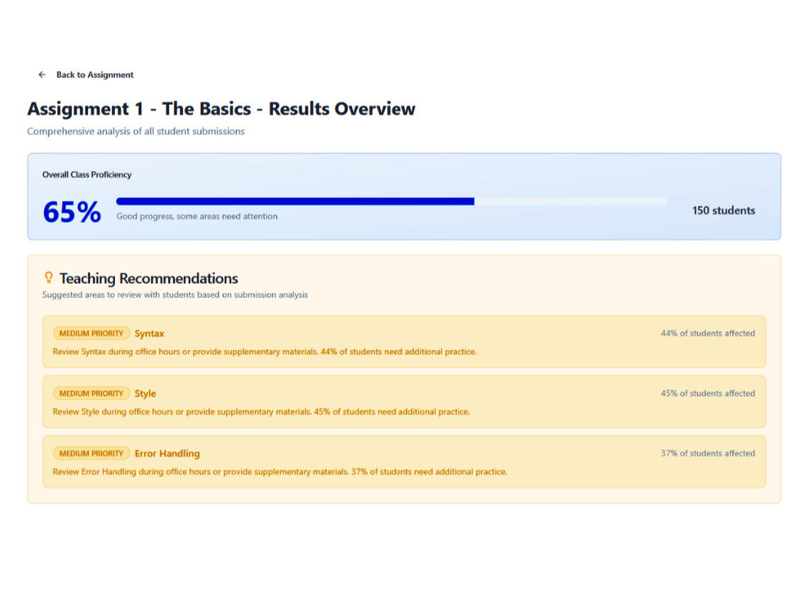 Save hours reviewing coding assignments while giving students clearer, more consistent feedback — without replacing instructor judgment.